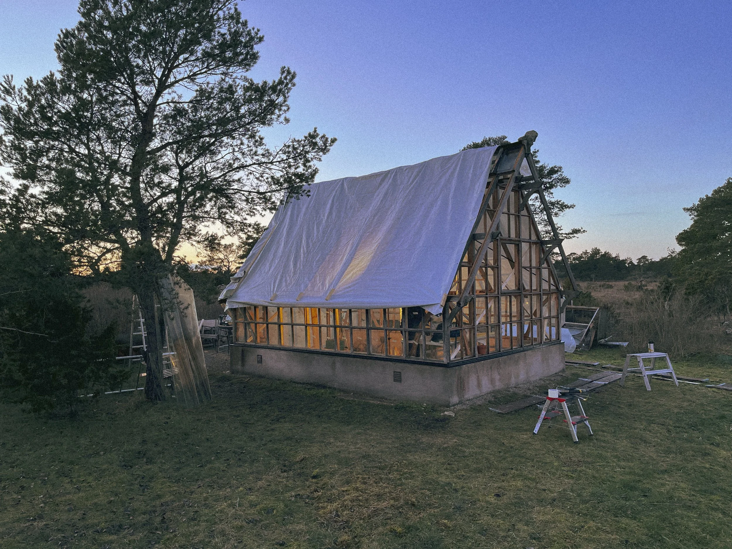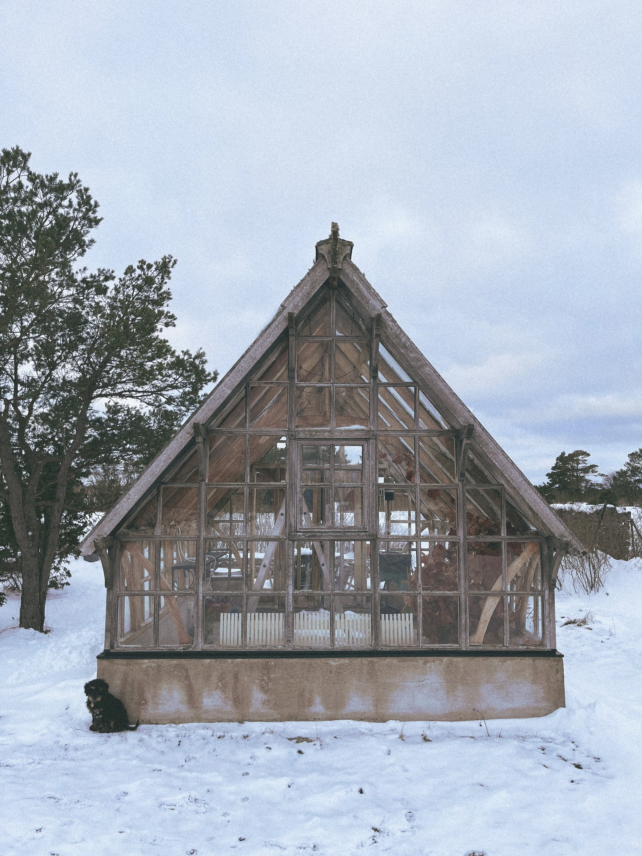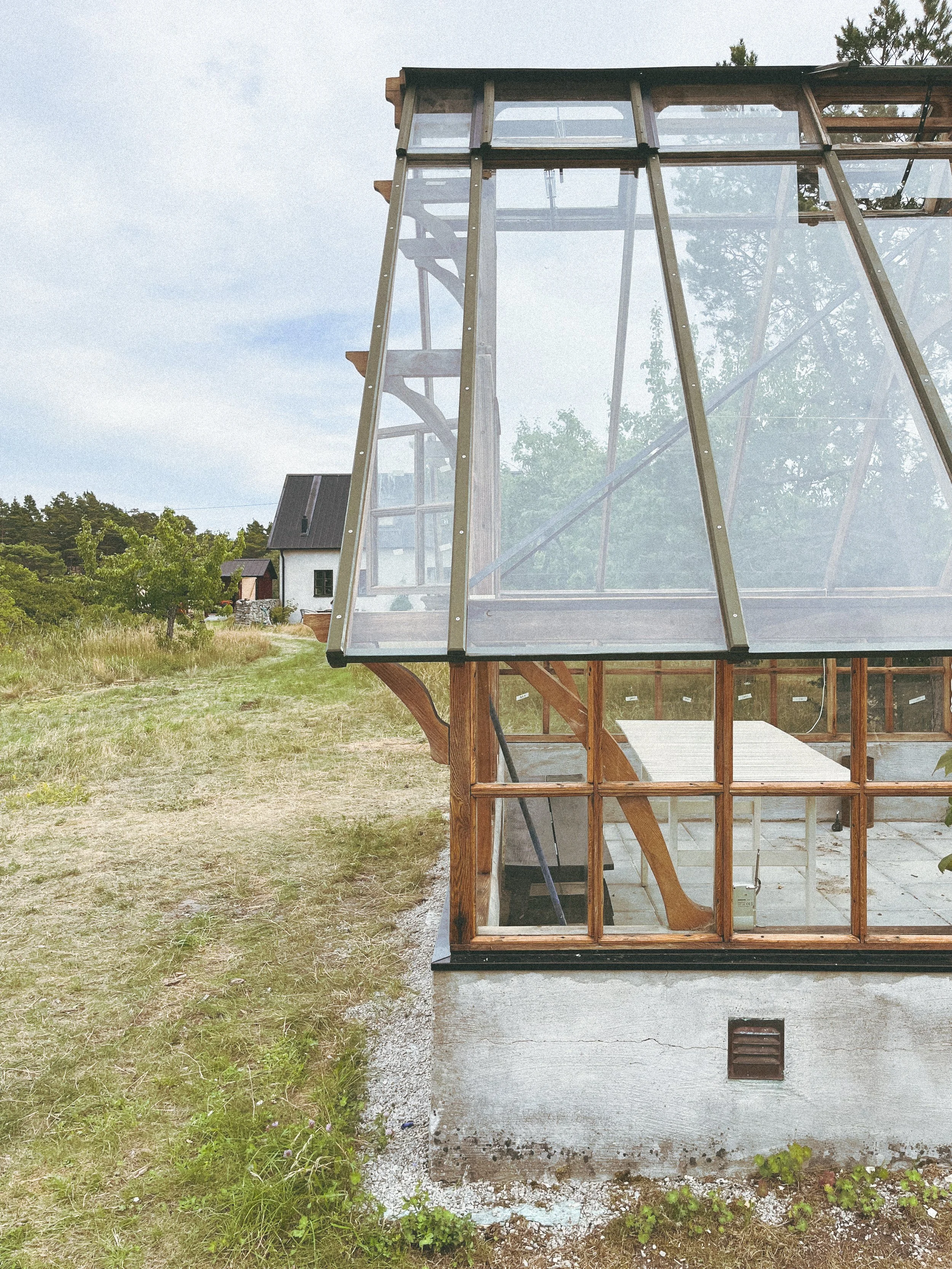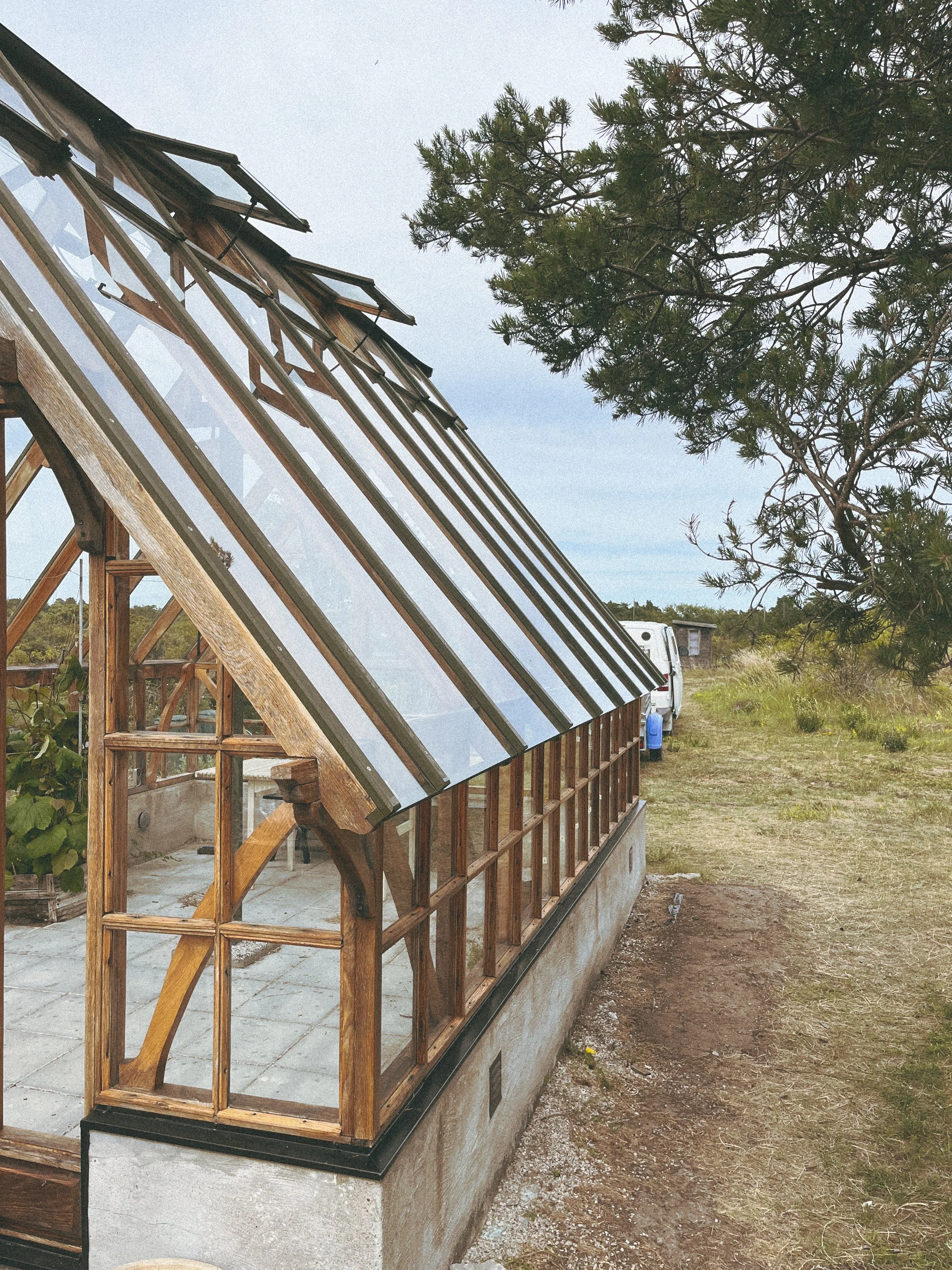 På heden vid Verkegårds på Fårö, stod ett mossigt och illa skött växthus i ek. Det där skulle man ju vilja rädda, sa vi.